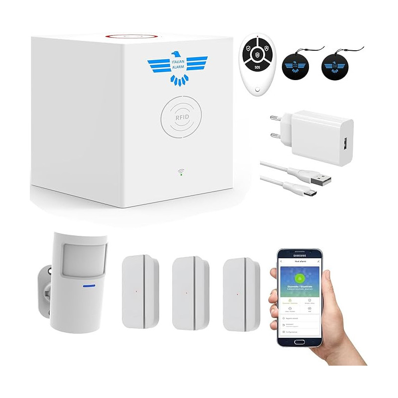 Un antifurto casa senza fili economico ma estremamente potente, che offre un controllo totale tramite le app gratuite "Smartlife" e "Tuya". Grazie alla connessione alla rete WiFi domestica, riceverai notifiche push in tempo reale direttamente sul tuo smartphone. Puoi gestire completamente il sistema ovunque ti trovi nel mondo. Nota: non supporta schede SIM.